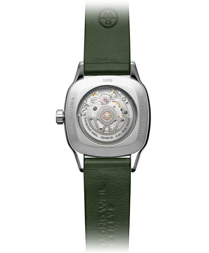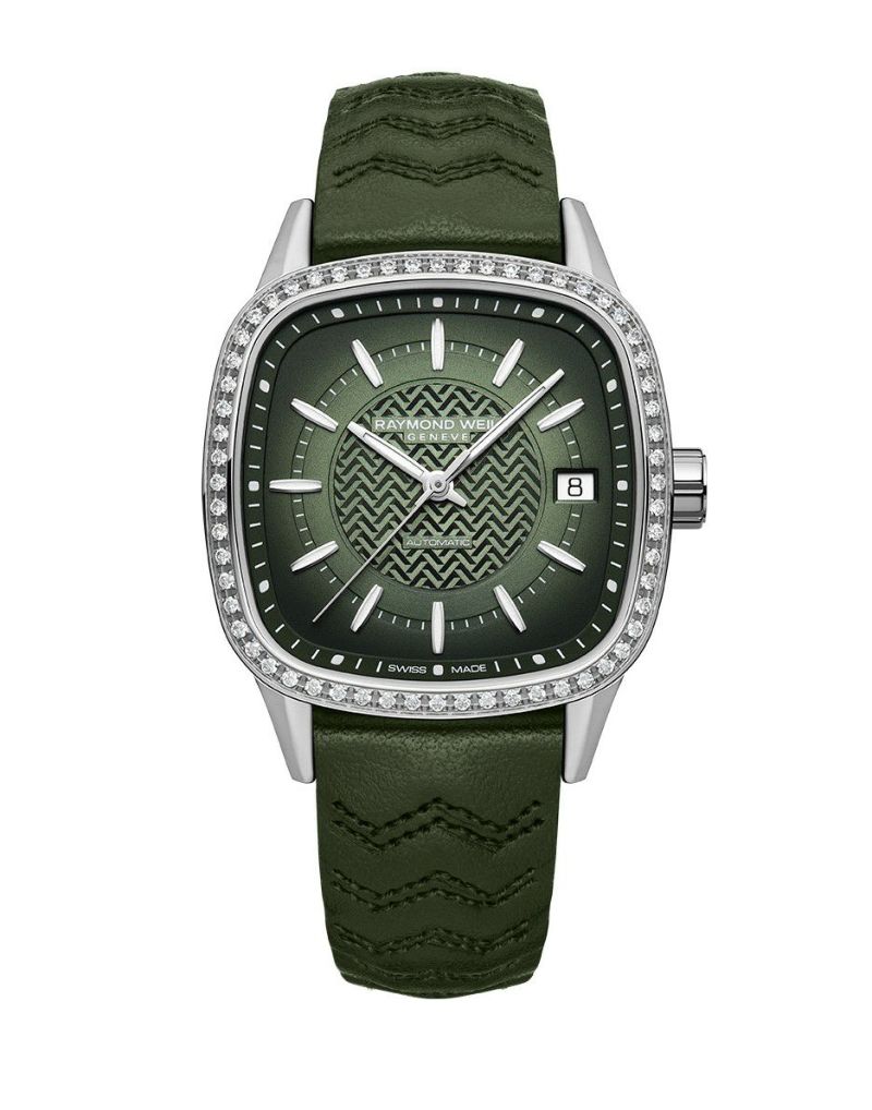 ウィメンズ、自動巻き、34.5mm、グラデーショングリーンダイアル、レザーストラップ