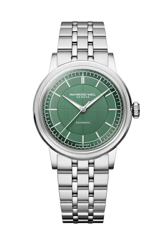 メンズ、自動巻き、35mm、セージグリーンダイアル、ステンレススティールブレスレット