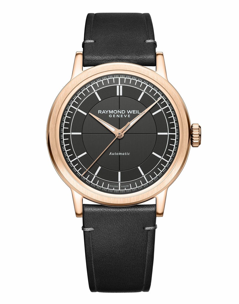 メンズ、自動巻き、39.5mm、アンスラサイトダイアル、レザーストラップ