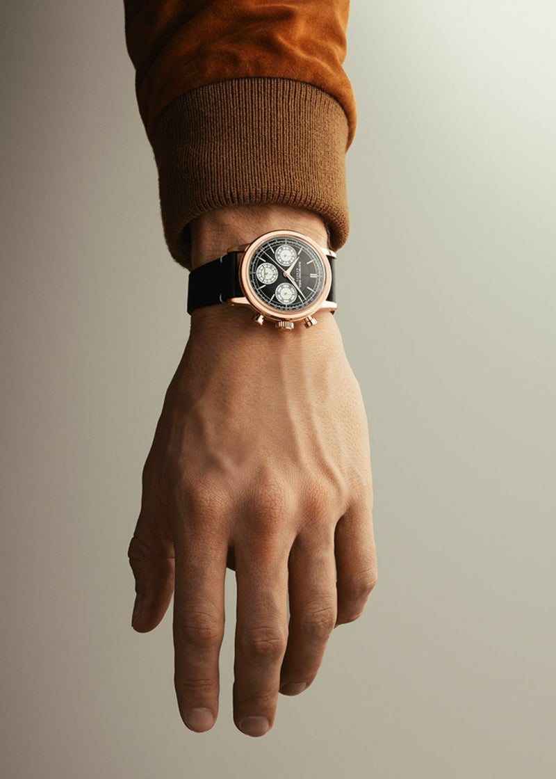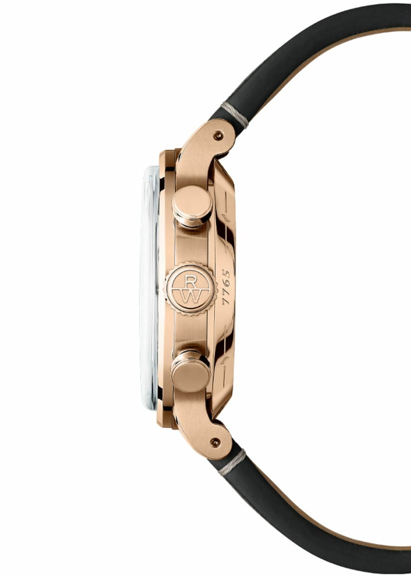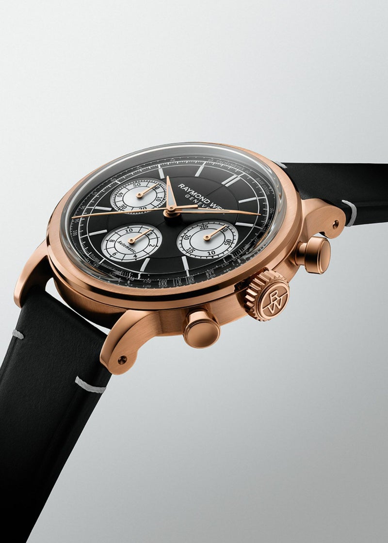 メンズ、自動巻き、39.5mm、ブラックダイアル、レザーストラップ