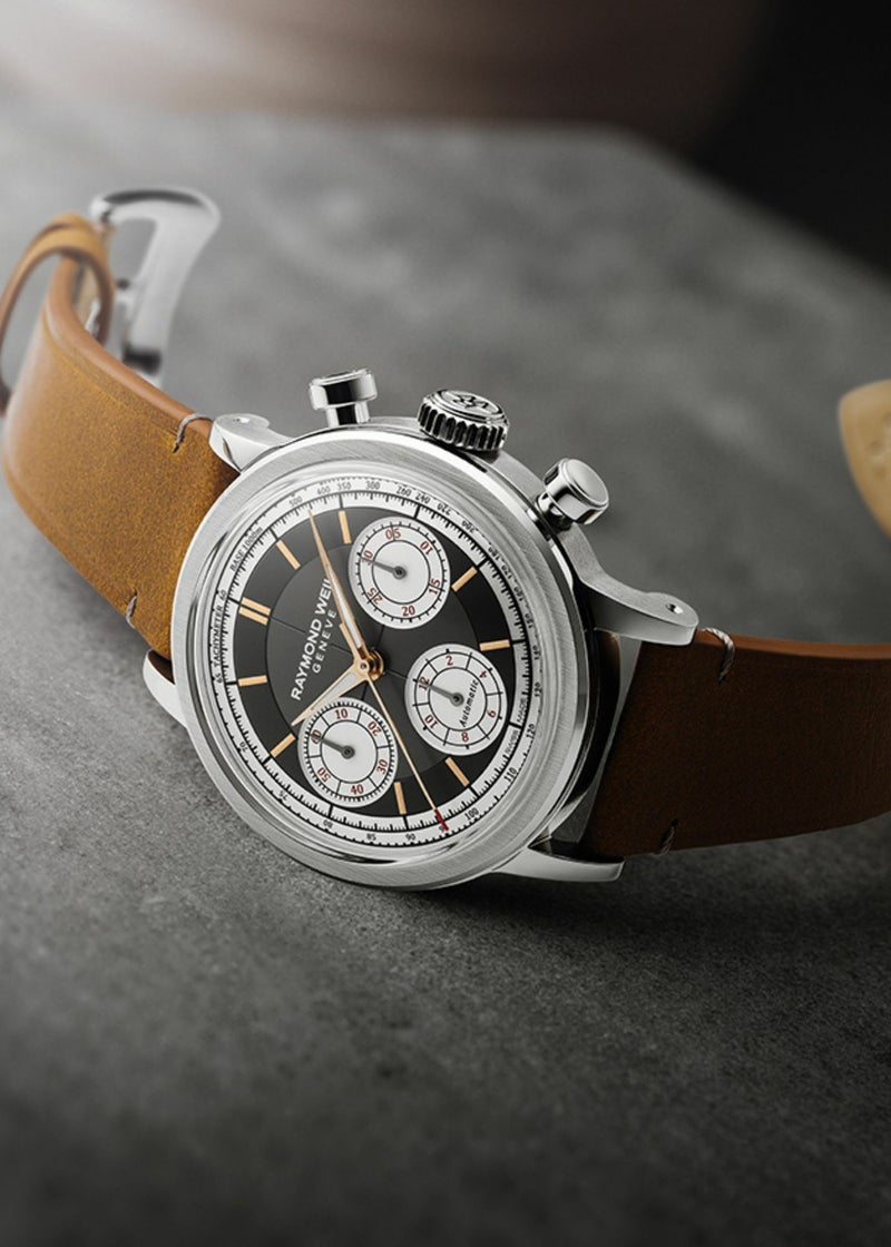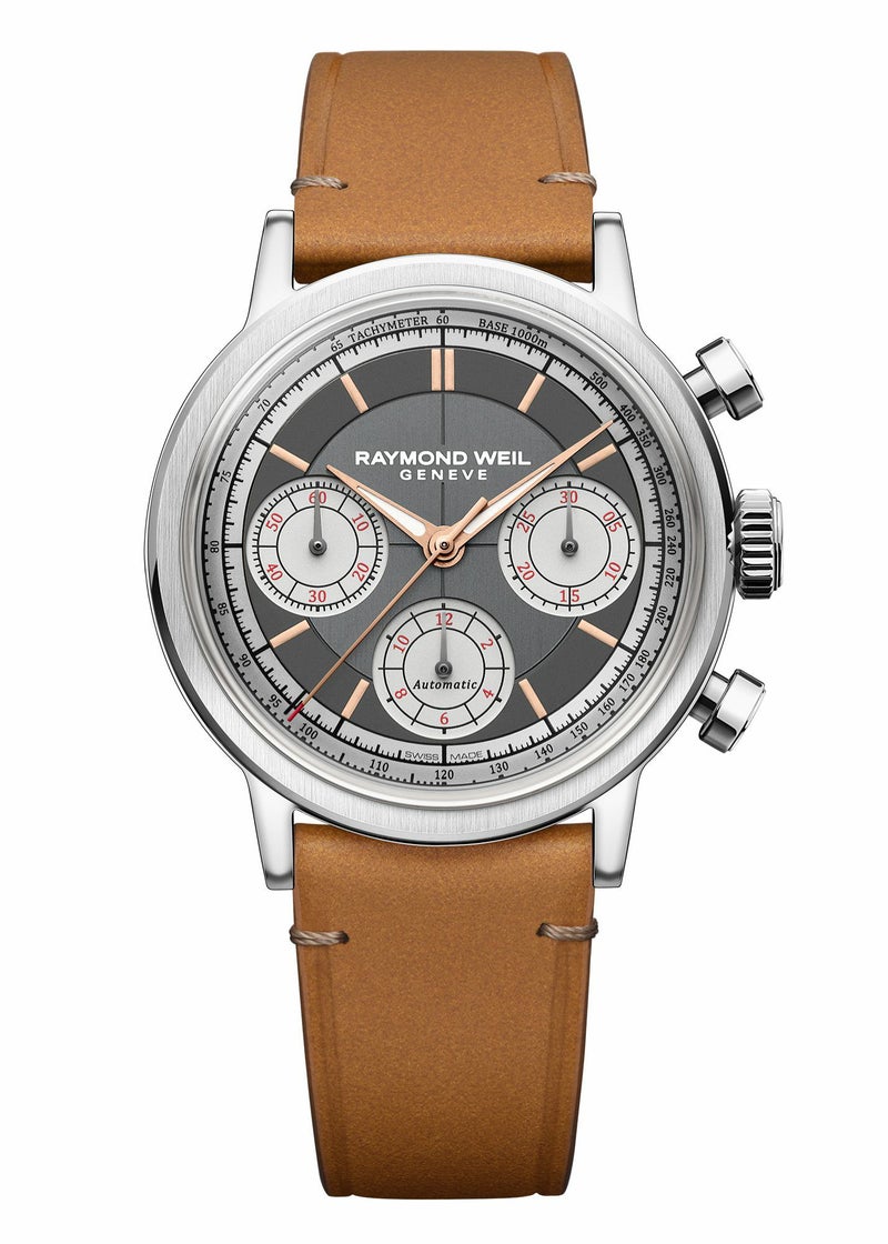 メンズ、自動巻き、39.5mm、アンスラサイトダイアル、レザーストラップ