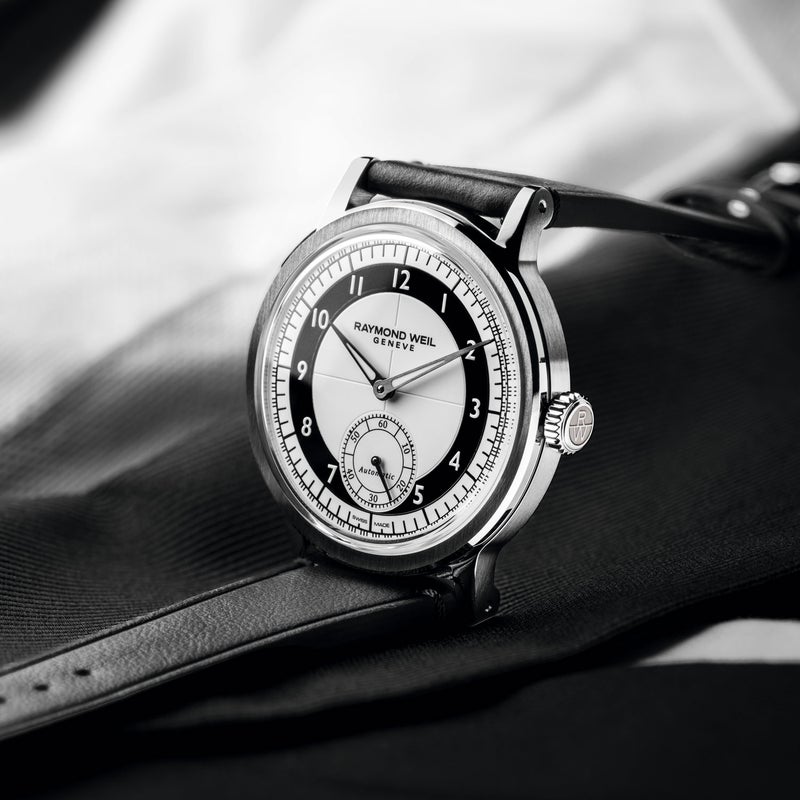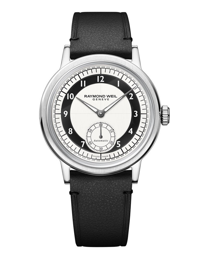 メンズ、自動巻き、39.5mm、クリーム×ブラックダイアル、レザーストラップ、スモールセコンド