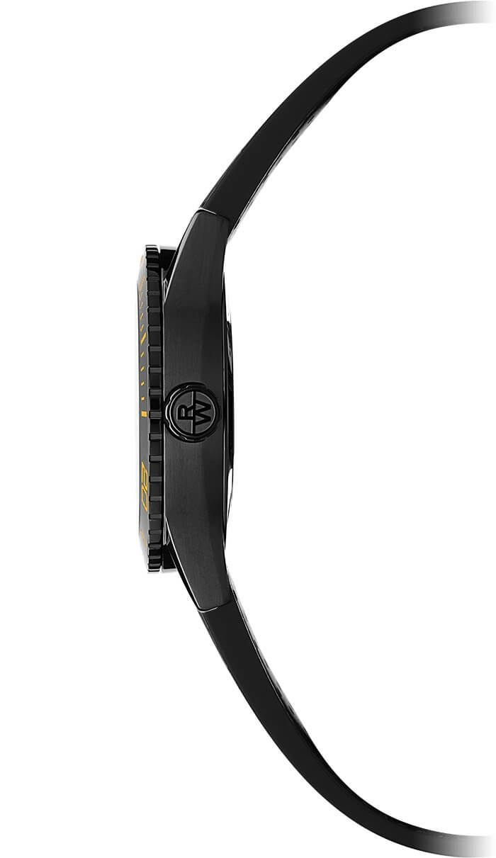 ブラックPVD加工を施した42mmのステンレススティール製ケースに自動巻きキャリバー・RW4000を備え、300mの防水性能を誇るダイバーズタイプのフリーランサーです。ブラックのベゼル・ダイアルを持つシンプルかつ高性能な時計です。