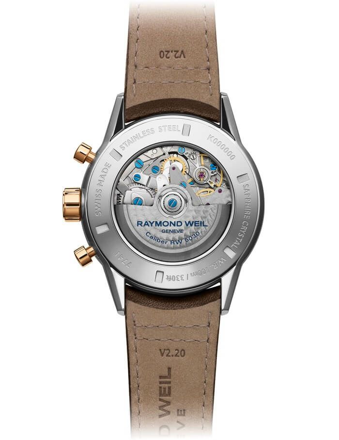 43.5mmのステンレススティール製ケースに、新キャリバー・RW5030を搭載した、クロノグラフ付きのフリーランサーです。タキメーター表示のあるベゼル部分は、傷に強いセラミック製素材で製造されています。約62時間のパワーリザーブを誇り、ケースバックからキャリバーの動きを見ることができます。ブラウンのカーフレザーストラップを合わせています。