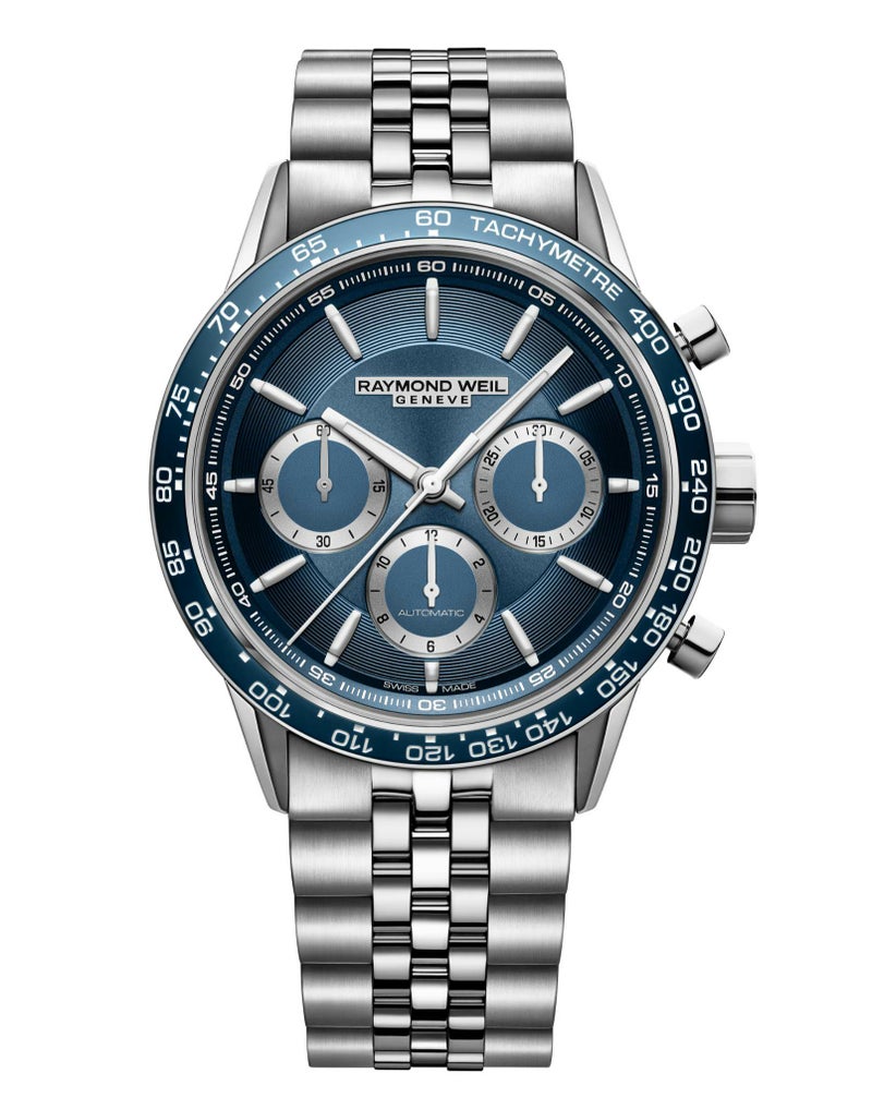 メンズ、自動巻き、43.5mm、ブルーダイアル、ステンレススティールブレスレット、クロノグラフ