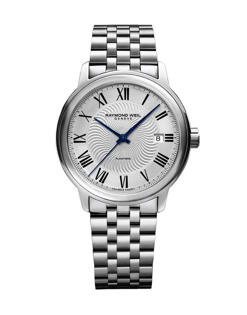 メンズ、自動巻き、39.5mm、シルバーダイアル、ローマ数字、ステンレススティールブレスレット