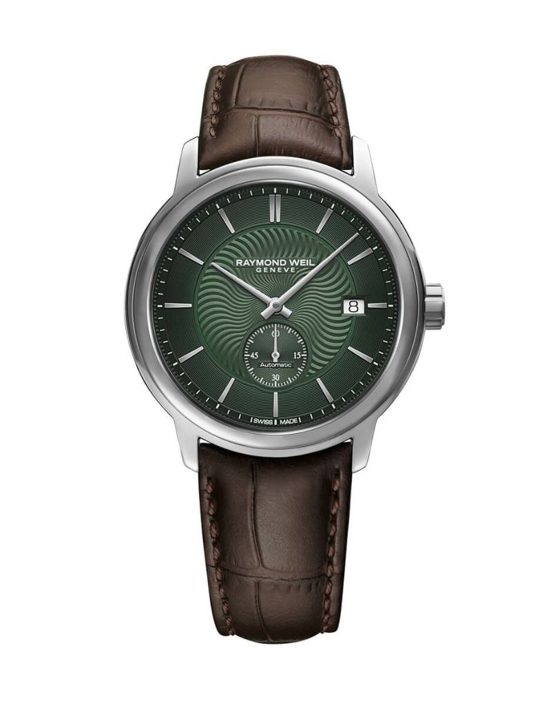 メンズ、自動巻き、39.5mm、グリーンダイアル、レザーストラップ、スモールセコンド