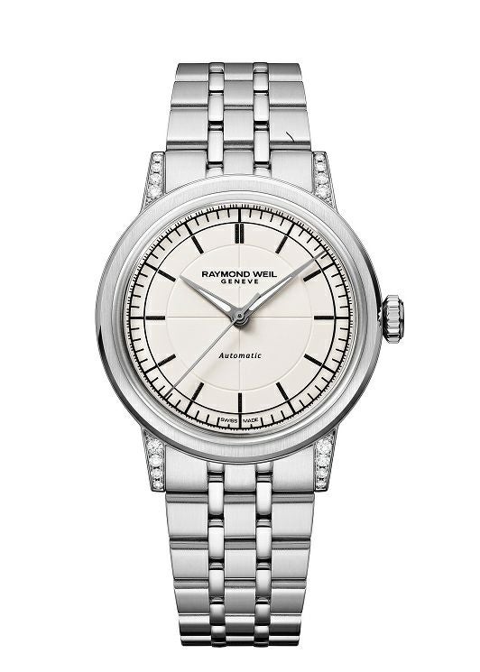 メンズ、自動巻き、35mm、クリームダイアル、ステンレススティールブレスレット