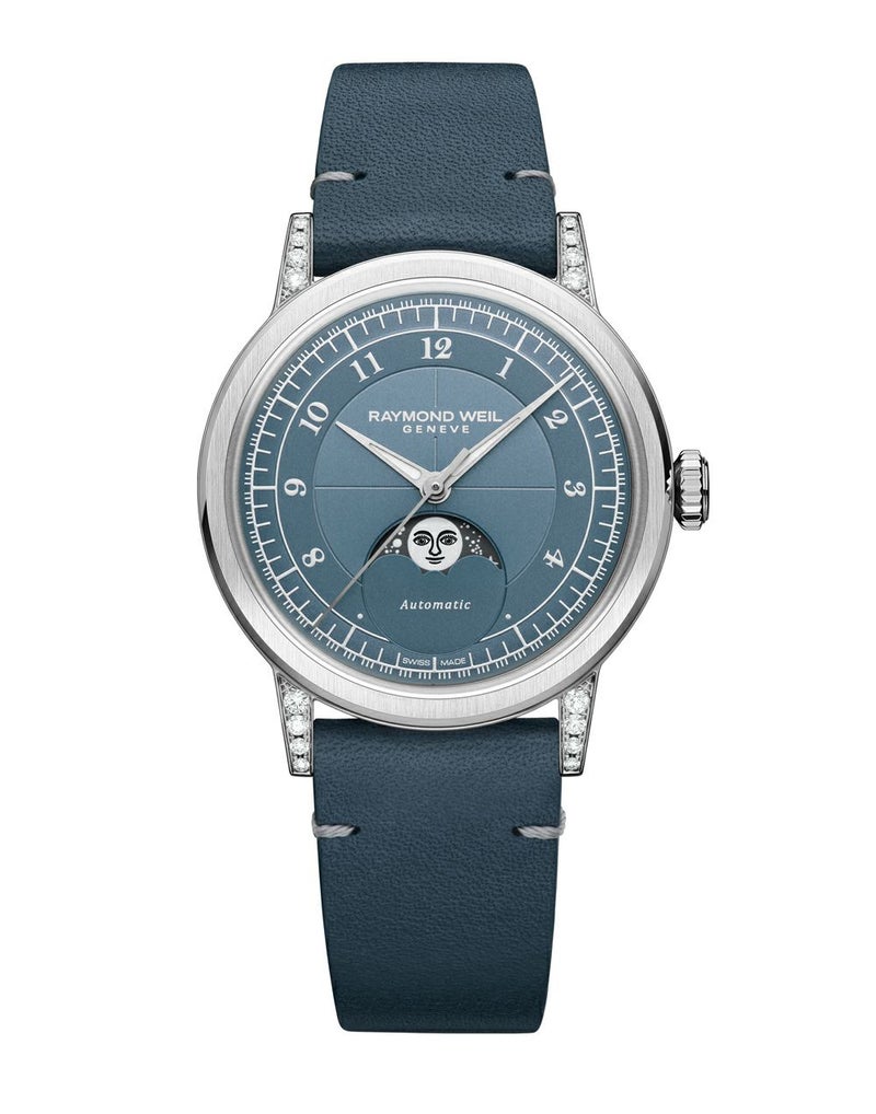 メンズ、自動巻き、35mm、デニムブルーダイアル、レザーストラップ