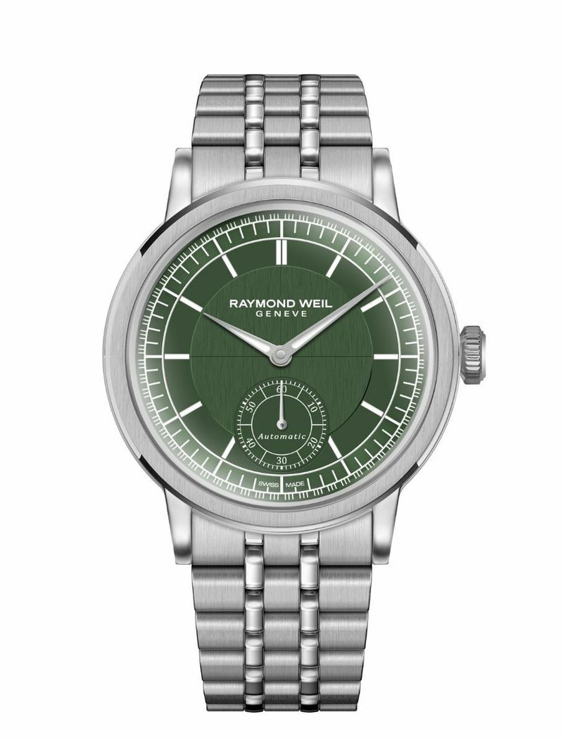 メンズ、自動巻き、39.5mm、グリーンダイアル、ステンレススティールブレスレット、スモールセコンド