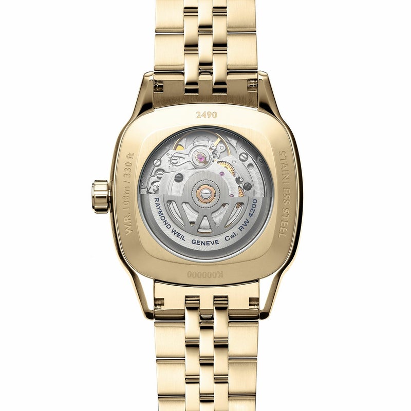 ウィメンズ、自動巻き、34mm、シャンパンダイアル、ステンレススティールブレスレット