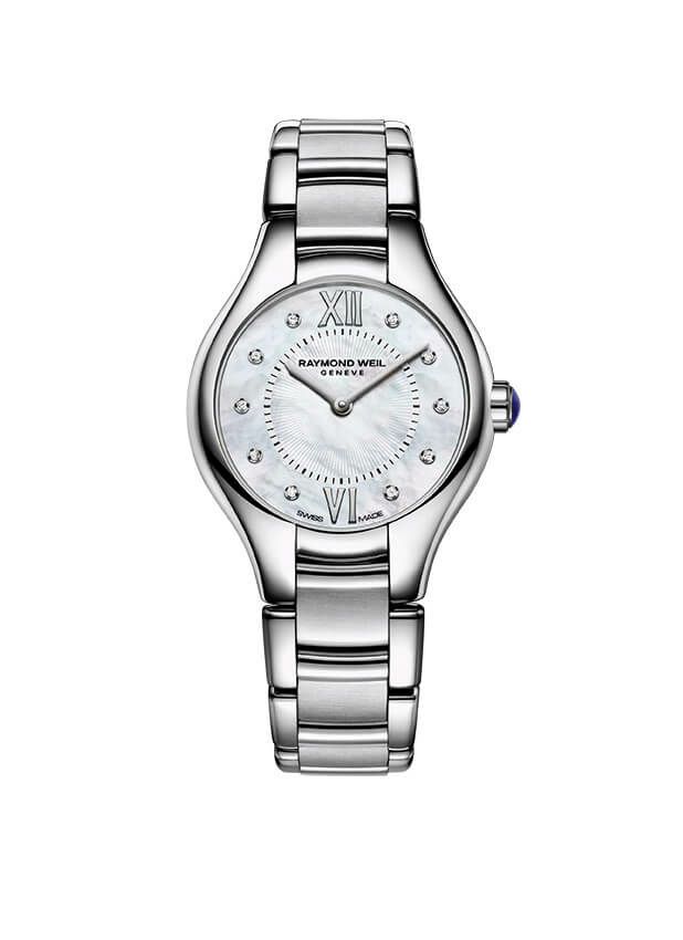 レイモンド・ウェイルの孫娘にちなんで名付けられたノエミア・レディースは、エレガントでタイムレスなスタイルとコンテンポラリーなタッチが特徴です。クオーツムーブメントを搭載したこのフェミニンなタイムピースは、あらゆる手首のサイズに対応できるよう24、32、36mmのケースで展開されています。ベゼルの優雅なフォルムは、ポリッシュ仕上げとサテン仕上げのリンクで構成され、曲線と丸みを帯びた輪郭を持つ滑らかなステンレススチールブレスレットと融合しています。この時計は、普段使いにも特別な日にも最適で、美を愛する女性を感動させることでしょう。