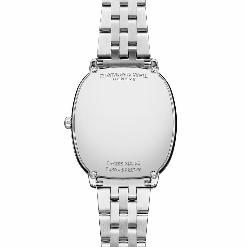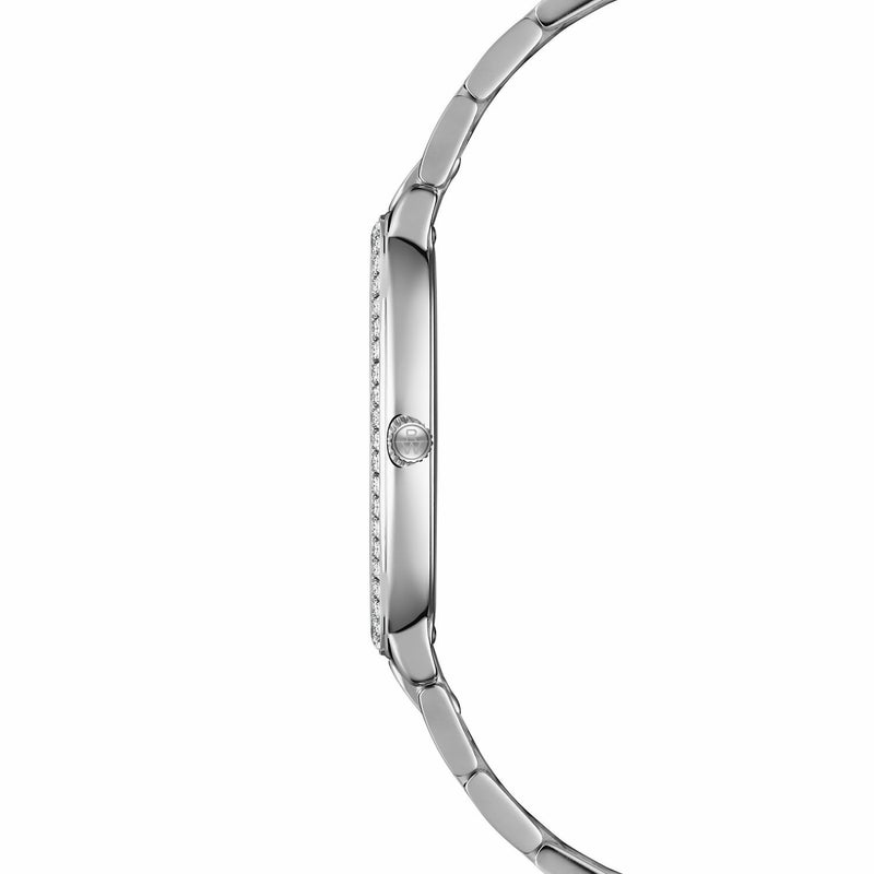 ウィメンズ、クォーツ、31mm x 36mm、レッドグレープダイアル、ステンレススティールブレスレット、ダイアモンド