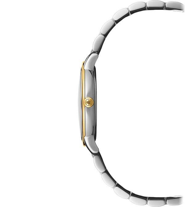ウィメンズ、クォーツ、34mm、ホワイトマザーオブパールダイアル、ステンレススティールブレスレット、ダイアモンド、イエローゴールドPVD加工