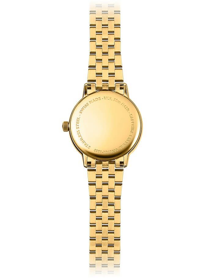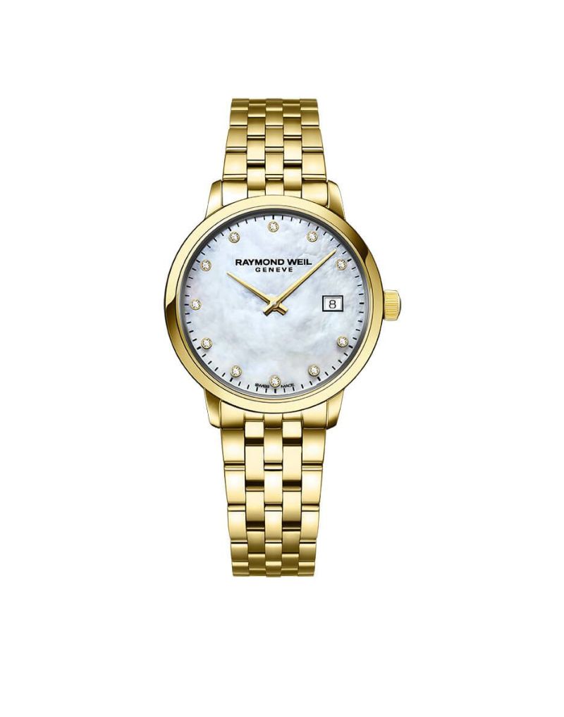 ウィメンズ、クォーツ、29mm、ホワイトマザーオブパールダイアル、ステンレススティールブレスレット、ダイアモンド、イエローゴールドPVD加工