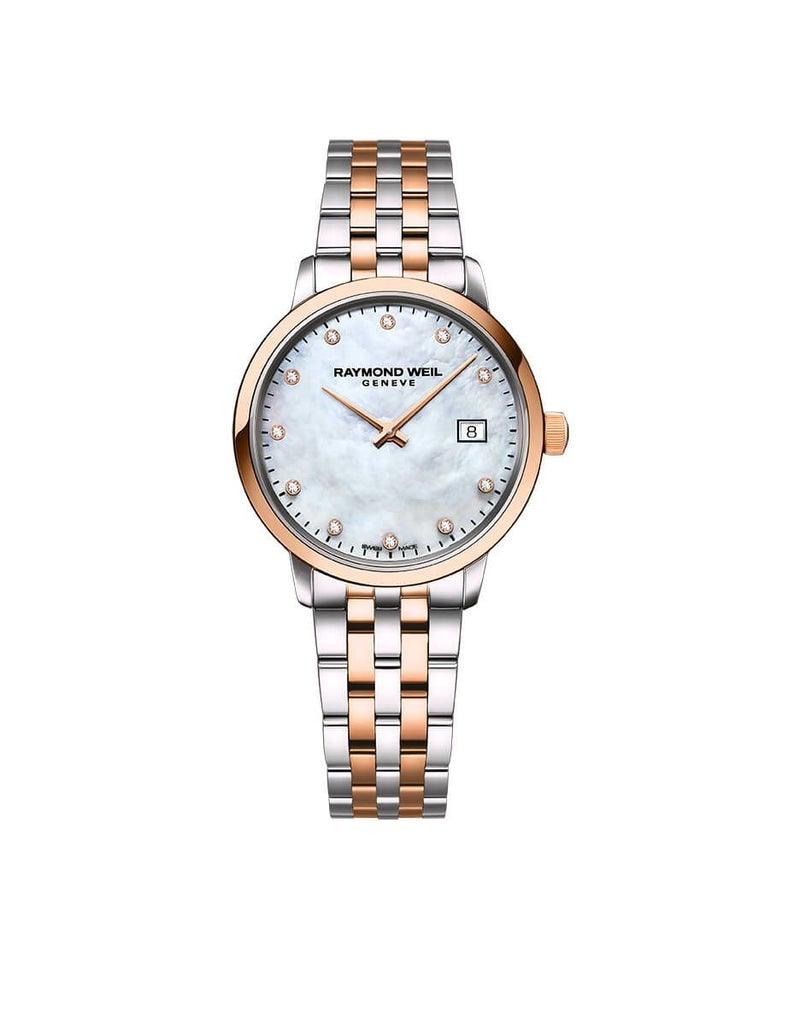 ウィメンズ、クォーツ、29mm、ホワイトマザーオブパールダイアル、ステンレススティールブレスレット、ダイアモンド、ローズゴールドPVD加工