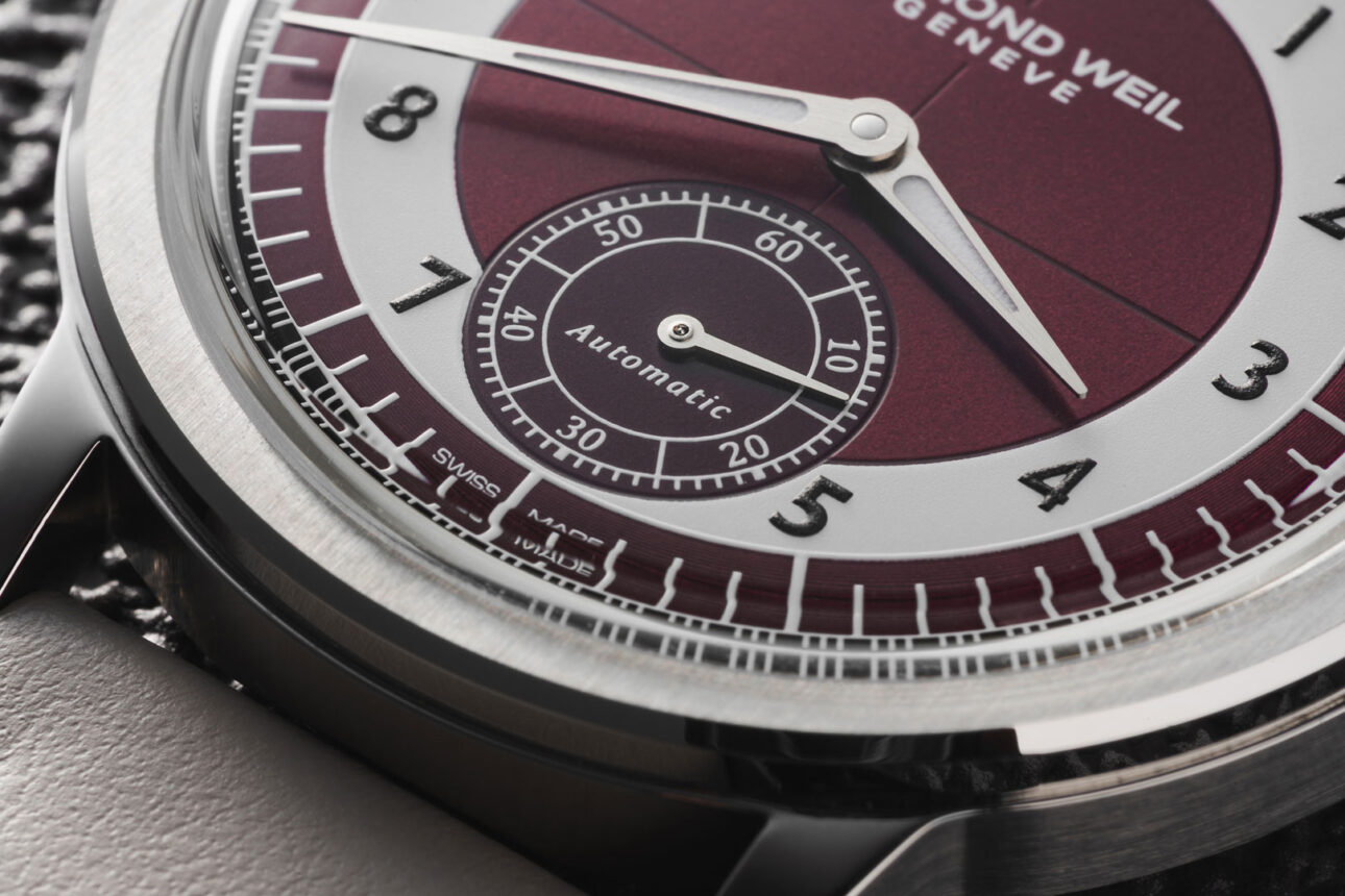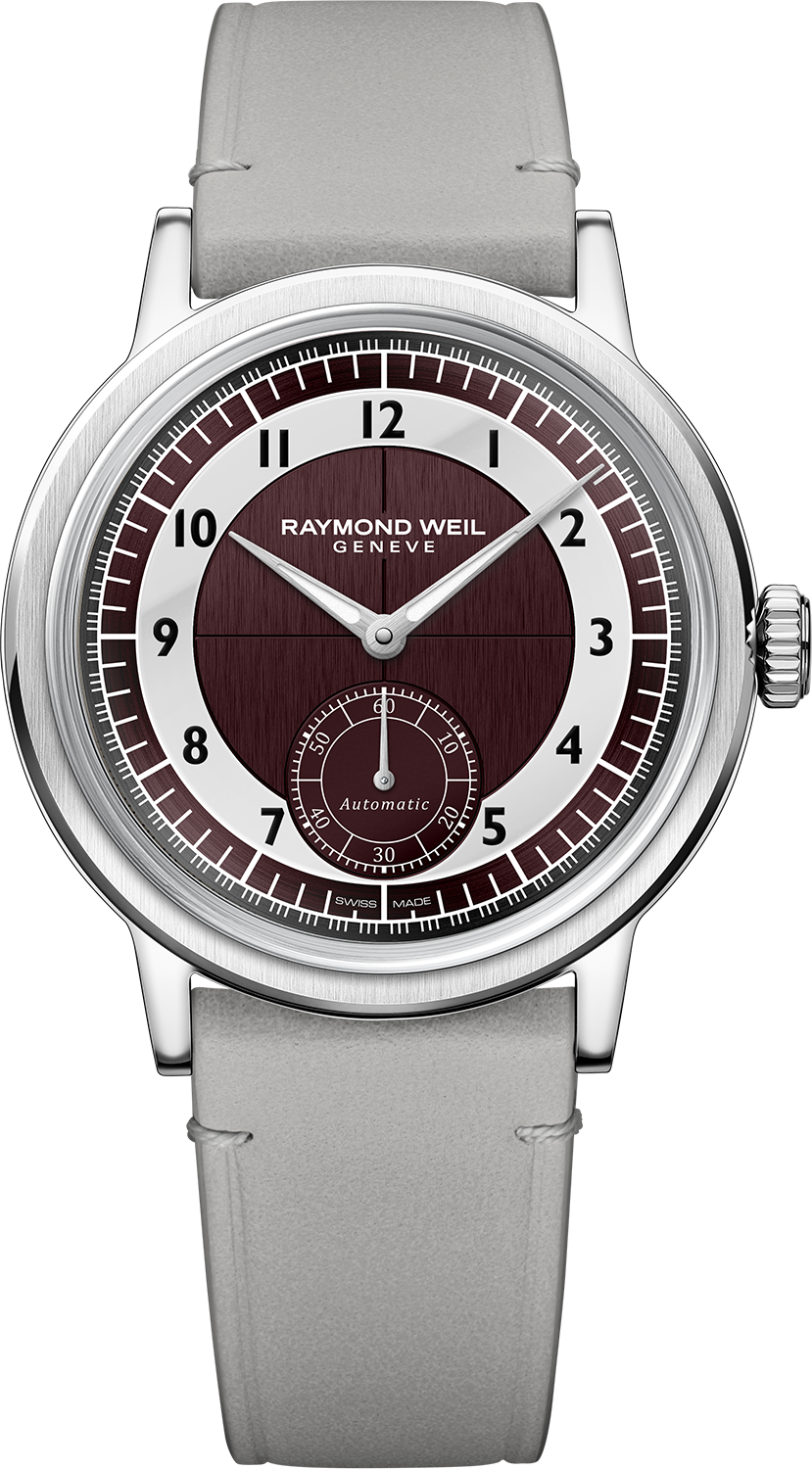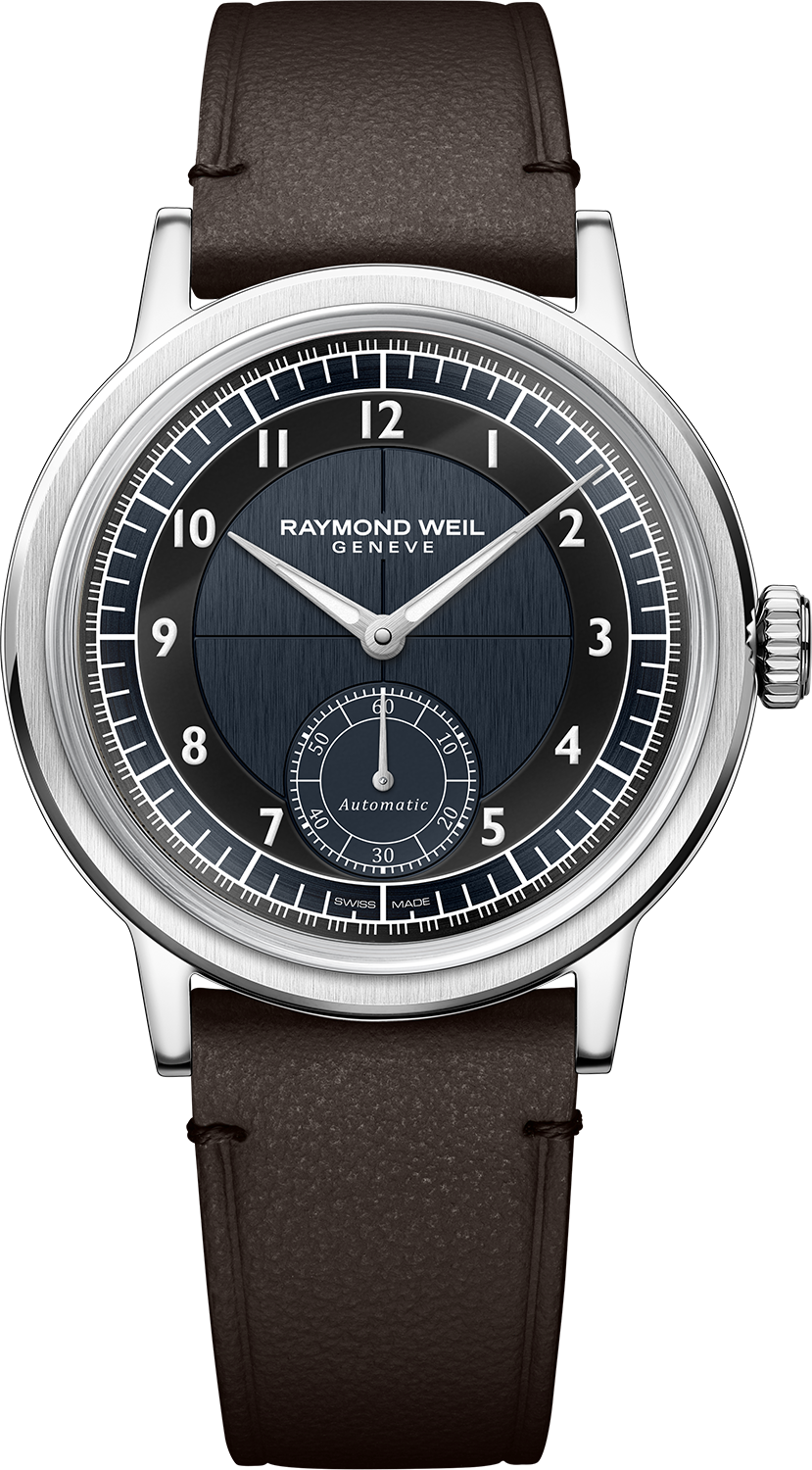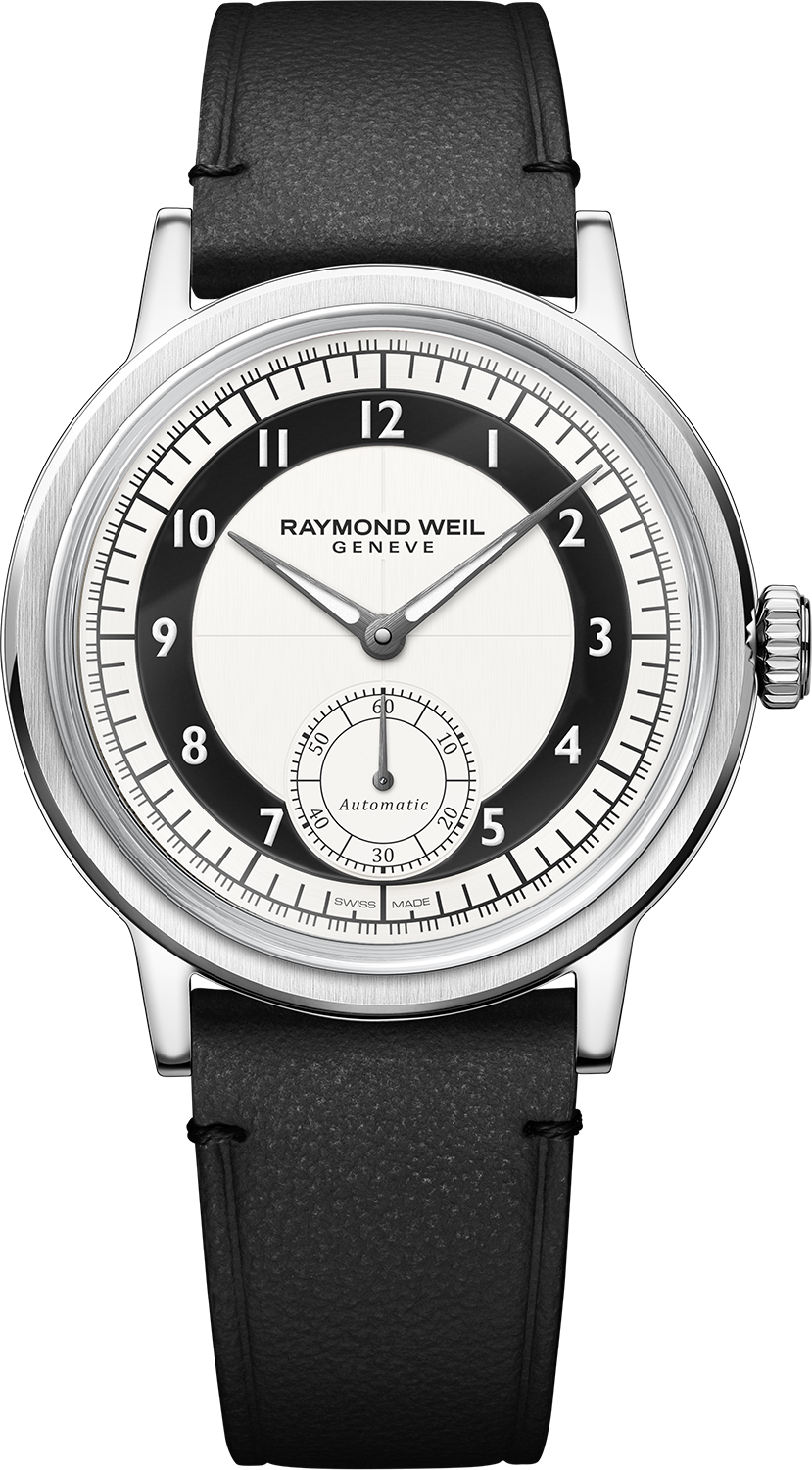 柔らかく、さらりとした手触りとヴィンテージ調の質感が特徴のカーフレザーストラップを採用。工具を使わず簡単に付け替えができるインターチェンジャブル仕様により、スタイルやシーンに応じたアレンジも自在です。コバ(側面)は凹凸のない均一で滑らかな仕上げとし、エッジの美しさを際立たせています。剣先には、レイモンド ウェイルのイニシャルを象ったW字型ステッチをあしらい、さりげない個性を演出。クラシカルな印象を高めるピンバックル仕様です。