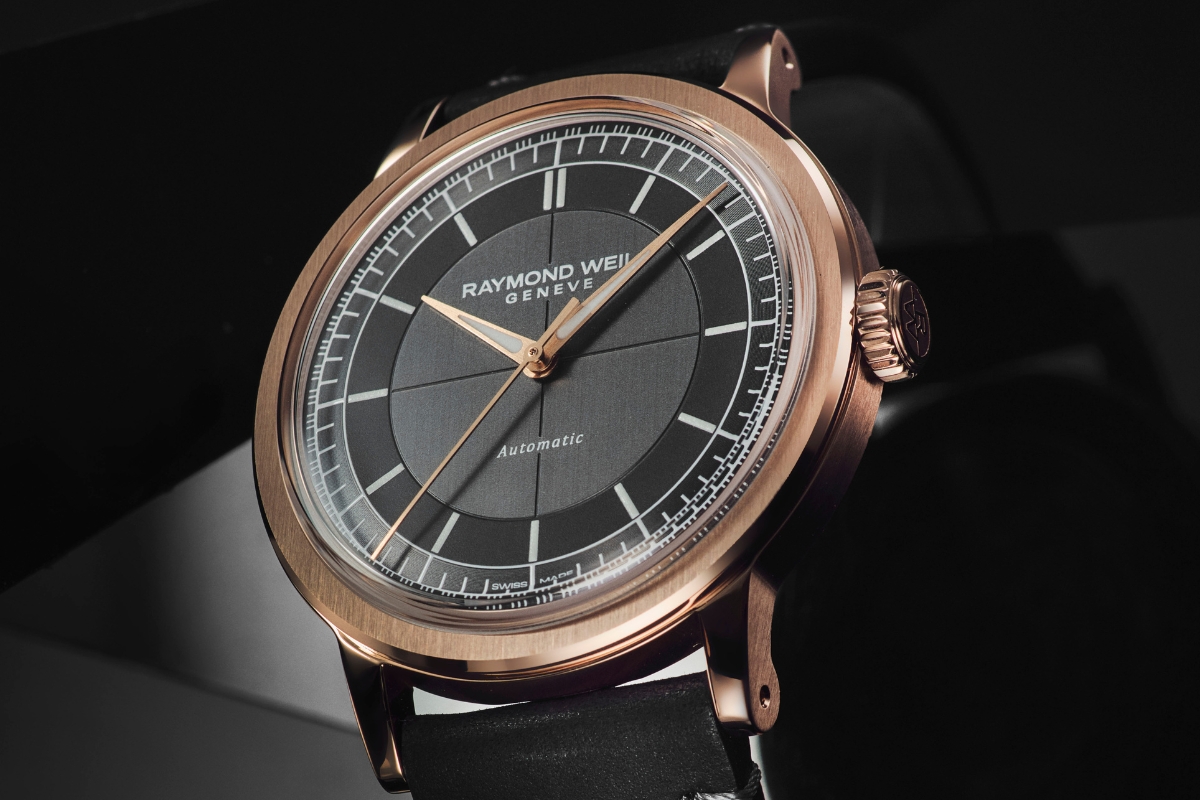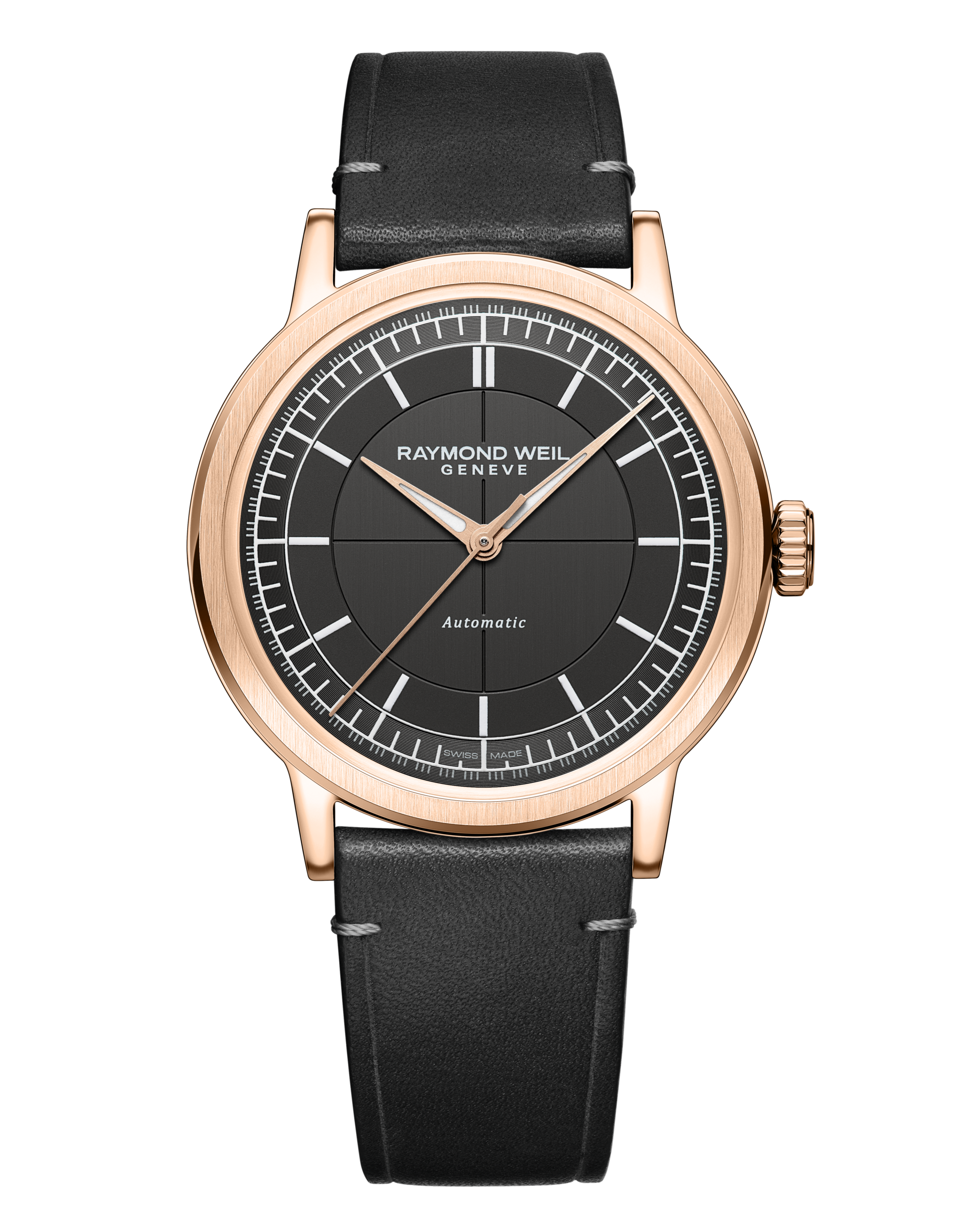 信頼性に定評のあるセリタ社製自動巻きムーブメントをベースとした Cal.RW4200 を搭載。シースルーケースバックを通して、レイモンド ウェイルのイニシャルを象ったW字型ローターの動きを鑑賞することができます。