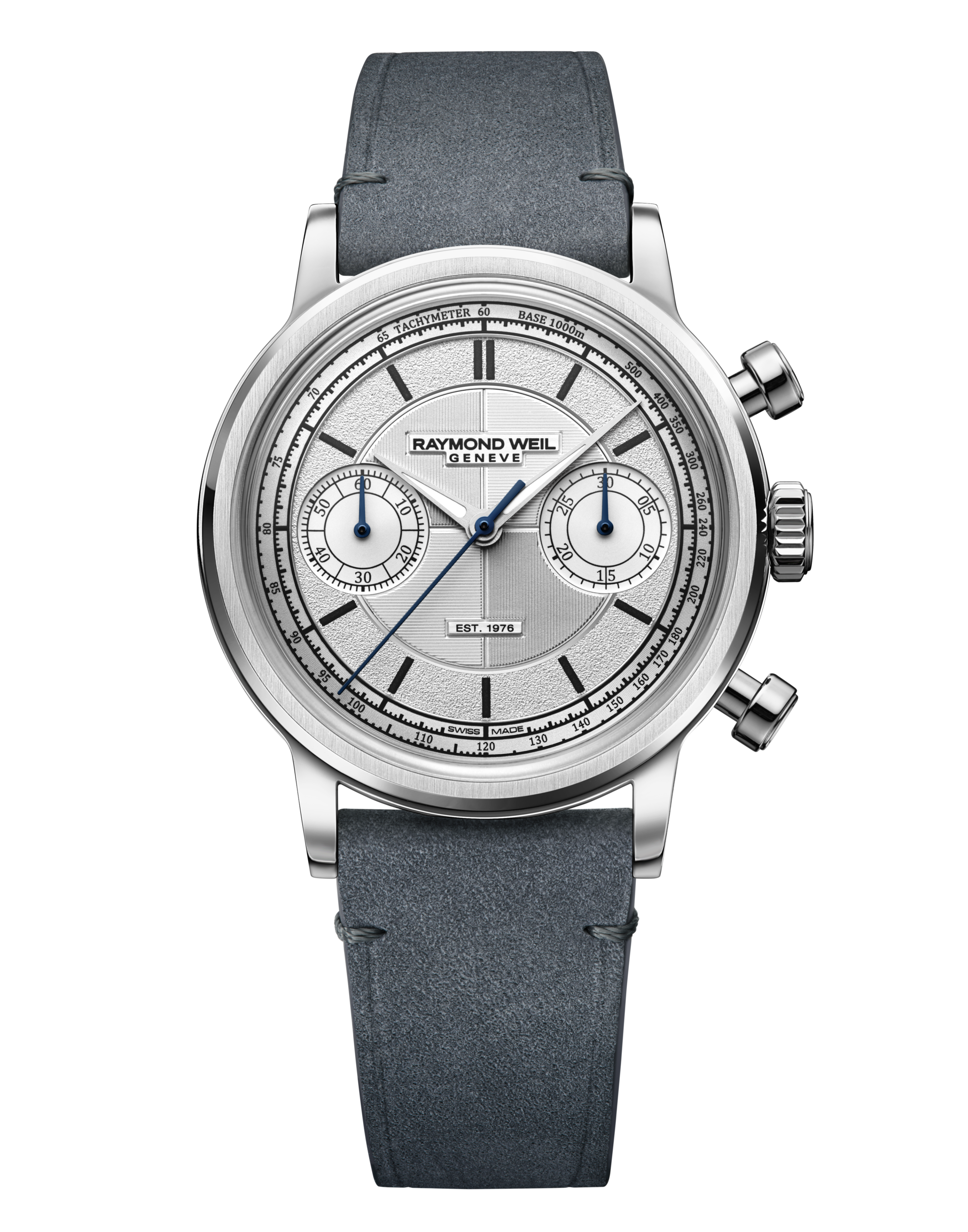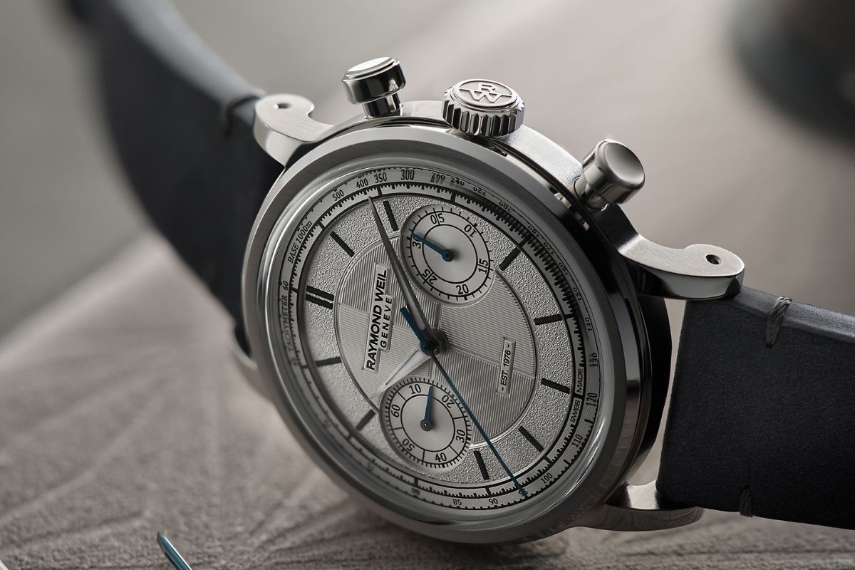 直径37mmのステンレススティールケースにホワイトゴールドベゼルを組み合わせ、往年の手巻きクロノグラフを想起させる端正なプロポーションに仕上げました。