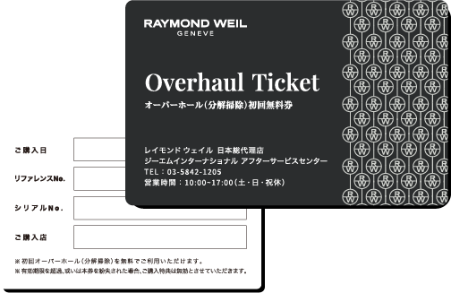時計を永くお使いいただくうえで欠かせないオーバーホール(分解掃除)。日本正規価格¥27,500~49,500(税込)のオーバーホールを、初回に限り無償で対応いたします。