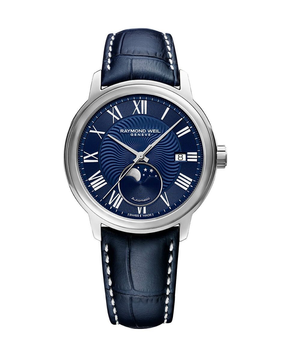 他の画像を見る 2239-STC-00509 マエストロ メンズ、自動巻き、39.5mm、ネイビーダイアル、ローマ数字、レザーストラップ、ムーンフェイズ機能 2239-STC-00509 ¥ 264,000 税込 お気に入りに登録する