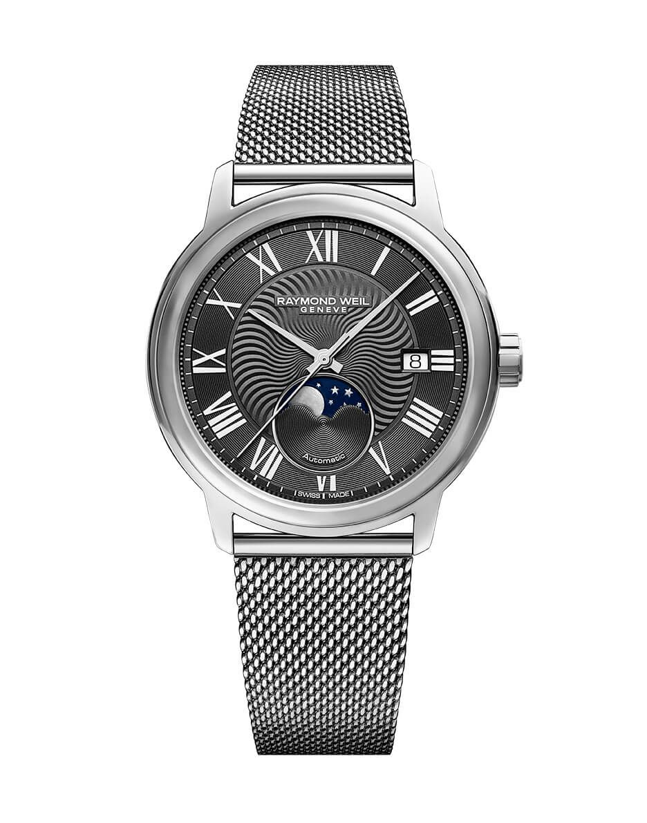 他の画像を見る 2239M-ST-00609 マエストロ メンズ、自動巻き、39.5mm、グレーダイアル、ローマ数字、ミラネーゼブレスレット、ムーンフェイズ機能 2239M-ST-00609 ¥ 297,000 税込 お気に入りに登録する