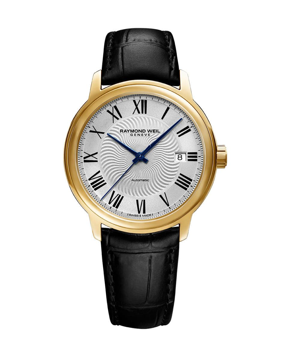 他の画像を見る 2237-PC-00659 マエストロ メンズ、自動巻き、39.5mm、シルバーダイアル、ローマ数字、レザーストラップ、イエローゴールドPVD加工 2237-PC-00659 ¥ 264,000 税込 お気に入りに登録する