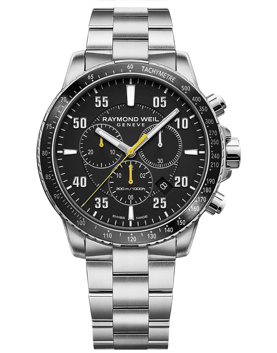 他の画像を見る 8570-ST1-20701 タンゴ メンズ、クォーツ、43mm、ブラックダイアル、ステンレススティールブレスレット、クロノグラフ 8570-ST1-20701 ¥ 264,000 税込 お気に入りに登録する